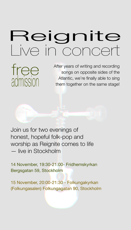 Reignite is all about creating authentic music. Reignite is also about music that is co-created by life-time friends from different sides of the Atlantic: Woburn (Massachusetts, USA) and Stockholm (Sweden). Collaborating online, Edwin and Menno are passionate about music and lyrics that move and ignite listeners. That is what they want to share with the world. Reignite’s characteristic sound has been described as “emotive yet energizing” with “gratitude driven lyrics”.
